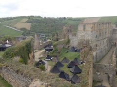 Umgeben von den alten hohen Mauern stehen unsere Schwarzzelte. Bündische Pfadfinder reisen zum Singewettstreit nach St. Goar und zelten hier ganz legal ein ganzes Wochenende in der Ruine. Da werden sich auch die Nebelkrähen aufmachen, dieses Spektakel mit zu erleben. Die Organisatoren haben das Event voll im Griff und die Lagerregeln sind überschaubar einfach und lassen uns viel Freiraum den Aufenthalt voll und ganz zu genießen. Das Leben hier ist sehr einfach und der zauberhafte Hauch vom Mittelalter umgibt uns die ganze Zeit.